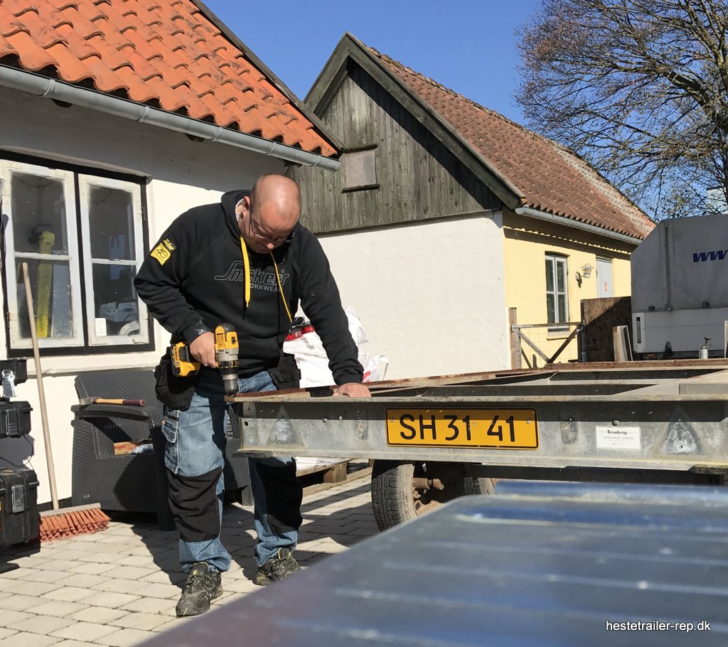 Ejeren af denne hestetrailer havde os på besøg ang. en anden hestetrailer men da vi opdagede deres ny indkøbte hestetrailer var bund rådne måtte vi hurtig fikse den